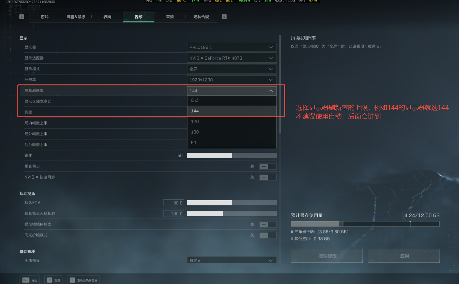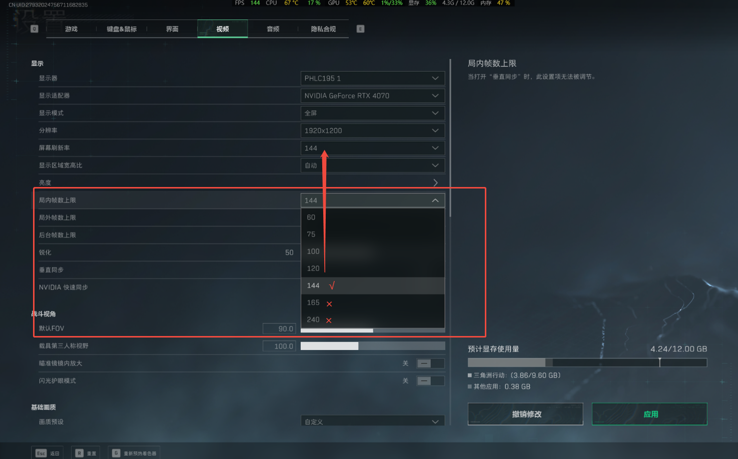 4、设置游戏内帧数上限