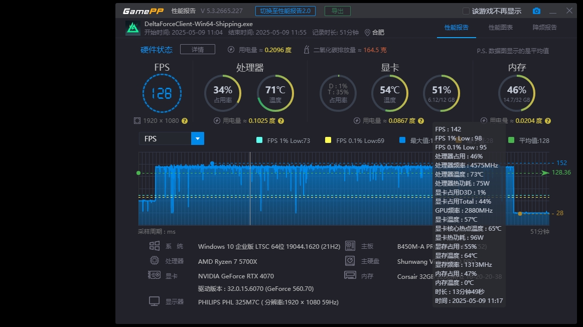 最后附上游戏中实际数据截图,大家可以看到游戏帧数非常稳定。