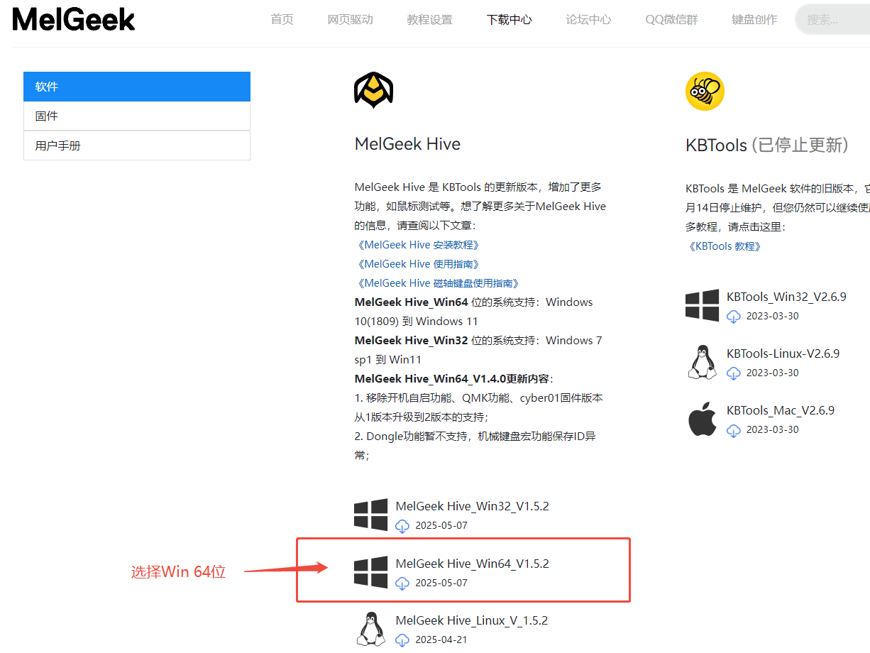 1、一般不用打驱动,插上线就可以用了。产品图如下 2、打开桌面的小蜜蜂驱动(MelGeek Hive_Win64)安装即可 或去官网https://www.melgeek.cn/download下载驱动,如下图 3、租赁完成后,归还设备 ①是否原装线 ②检查TYPE-C接口两端是否有损坏 ③检查键盘键帽等外观是否有明显破损,是否有饮料等东西进入键盘缝隙等等。 ④做完功能、外观检查后,清洁键盘,方可进行归还到展示柜。