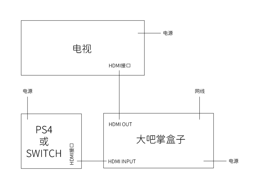 大吧掌主机游戏盒子(分屏器)接线示意图