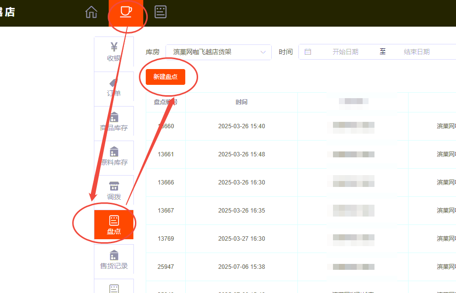 1、收银端打开“盘点”-“新建盘点”
