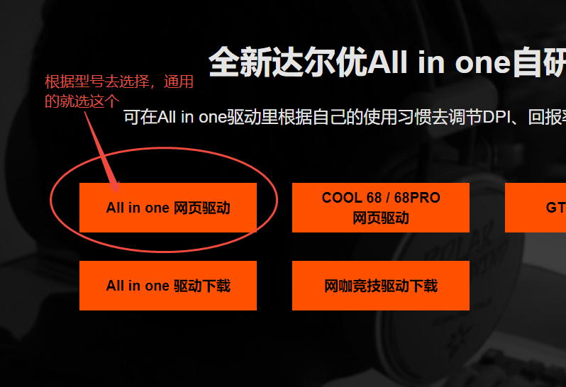 4、打开达尔优网站后选择“ALL in one网页驱动”,选择“连接设备”